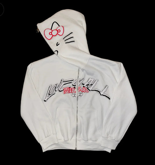 HK WHITE ZIP UP HOODIE